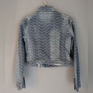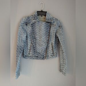 Free People Textured Denim Jacket Cropped Women Size 2.