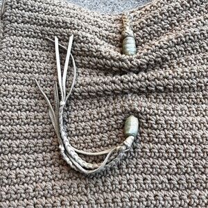 Lucky Brand Hobo Bag Natural Cotton Slouchy Hippie Purse Tassel Indie Satchel