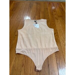 Keywords: Express, Body Contour, Bodysuit, Sequin Top, Sleeveless Top, Party Top, XL, Extra Large, NWT, New with Tags, Beige, Glam, Evening Wear, Bodycon