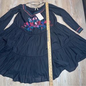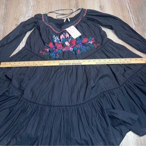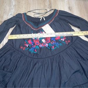 Free People Women’s Small Sunbeam Off The Shoulder Dress Embroidered Black Boho