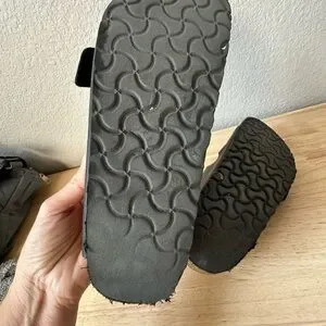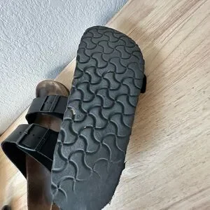 Classic black leather sandals with adjustable straps. Comfortable footbed for all-day wear.