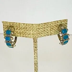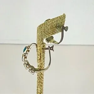Vintage Sterling Silver Turquoise Screw Back Earrings Hoop Southwestern Native
