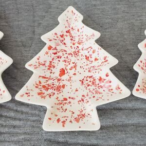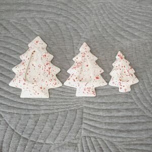 Vintage 70s Ceramic Christmas Tree Candy Nut Dishes X3 Nesting Speckled Confetti
