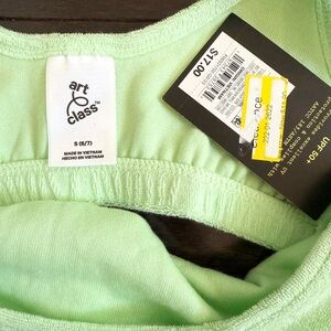 Bundle includes 1 PJ set, 1 white long-sleeves t-shirt, 1 crop purple sweatshirt, 1 white cardigan, 1 green legging, 1 green dress. Brands: Cat & Jack, All in motion, & Art class
