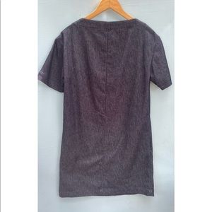 Measures approximately 18 inches across the bust, 19 inches across the waist, 20 inches across the hips, and 34 inches total length (from the top of the shoulder to the bottom hem)