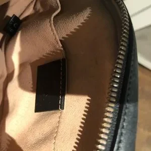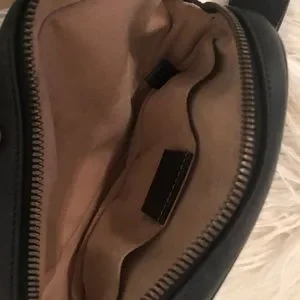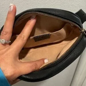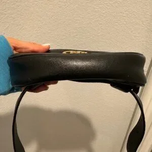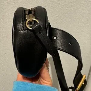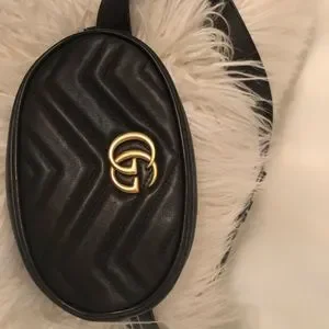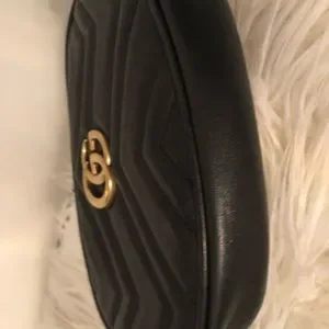 Elegant black quilted leather crossbody bag with gold-tone accents. Perfect for any occasion.