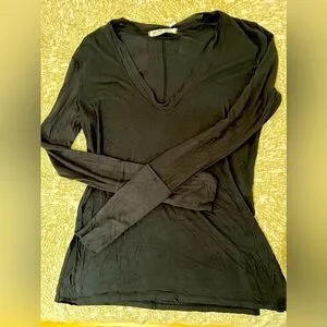 Chic Black long sleeve tee with side slits and detail stitch work. Soft fabric. Ideal for casual wear. Authentic We The Free NWOT