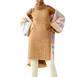 by Anthropologie Turtleneck Sleeveless High-Low Knit Sweater Dress size L