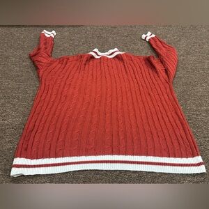 EUC! Get 3! Women's Cable Knit V neck preppy Sweater Trio Green, White Red🇮🇹