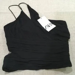 ZARA ASYMMETRIC ONE SHOULDER Crop Top Pleated size s new