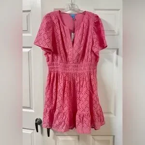 Draper James Wilson Pink Eyelet Whimsical Feminine Mini Dress New With Tags XL