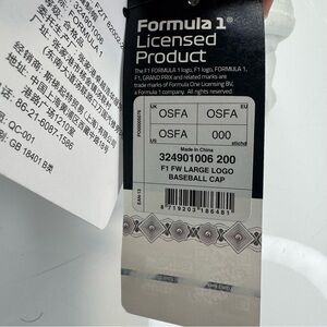 Official Formula 1 Baseball Cap Men's Size OS White Cotton Racing FW Large Logo