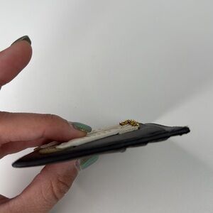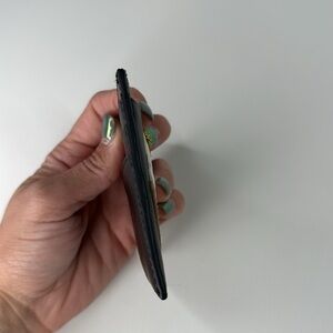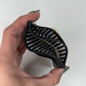 How cute is this whimsical wallet? Gold 3D and gold glitter detailing on cream skates and a black body. Sizing in photos. Great for small purses, mini bags and belt bags! Multiple card spots and cash spot! Excellent used cosntion! See all photos before purchasing and ask any questions below!