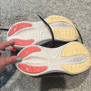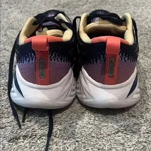 Stylish ASICS sneakers with navy and pink design. Only used on the treadmill (see last picture of black on the toe strike).