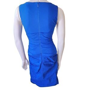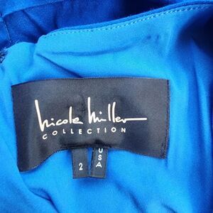 Nicole Miller Collection blue sleeveless dress with a ruffle going across it.