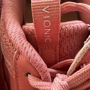 Experience the perfect blend of style and comfort with Vionic's sneakers. These shoes feature a sleek, modern design with a soft coral upper and a contrasting white midsole. Ideal for everyday wear, they offer a casual athletic look with traditional lacing and a rounded toe.