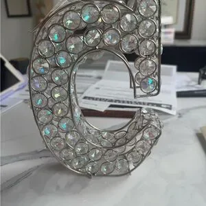 Elegant letter C decor with sparkling crystals. Perfect for adding a touch of glamour.