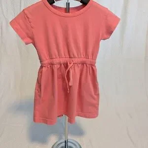 Charming coral dress by Primary. Soft fabric. Elastic waist with tie. Perfect for casual outings. Stain free. From smoke free and pet free home.