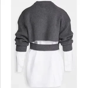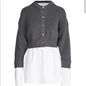 Alexander Wang Bilayer Crew Neck Oxford Cardian Sweater