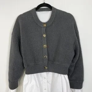 In excellent condition Alexander Wang Bilayer Crew Neck Oxford Cardian Sweater.
