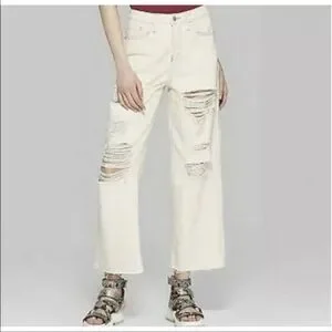 Wild Fable Cream Distressed High Rise Skater Jeans raw hem wide leg destroyed front of the legs. NWT.