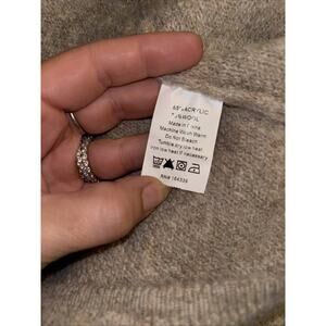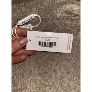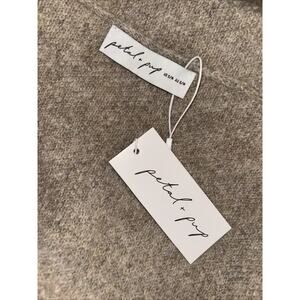 Brand new and never worn Petal & Pup solid light brown/darker beige wool blend long sleeve tunic length Skylar Open Front Coatigan. Features pointed tip notched collar/lapel and long straight cut sleeves. Open front hip pockets at low sides. Cut straight through body length, falling to around knee. Thicker and heavier weight knit fabric. Stretch available. Women’s size small/medium with