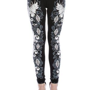 new VOCAL LEGGINGS FLEUR-DE-LIS rhinestones party pants black SM-XXL SLIMMING