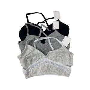 Versatile and comfortable bralettes designed for all-day wear, featuring innovative geo-textured band and adjustable convertible straps. Crafted with double-lined fabric and darted cups, these bralettes provide gentle support and a smooth silhouette across three neutral color options. Bundle includes 3 bralettes.