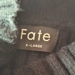 FATE, X-Large, Black, Brand New, Long Sleeved Mock Sweater, 100% acrylic and PTP is 24 (but there is room for stretch so could go to 26) - there is a slight snag on the upper left shoulder otherwise NEVER WORN, Excellent Condition. Smoke free and pet free home. Perfect piece to wear for the Christmas season or to ring in New Years Eve!!