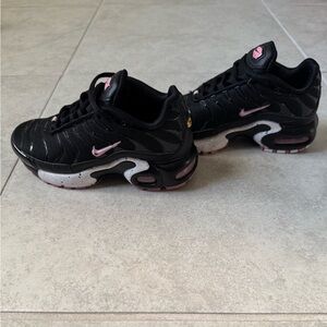 Little girls pink, black, and white Nike Air Trainers. Size 13. Looks new other than the Nike logo is scuffed as shown in photos and obvious wear on the bottom of the shoe. I think these run small and my daughter only wore them twice. No box. Will supply more photos if requested.