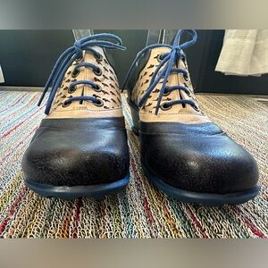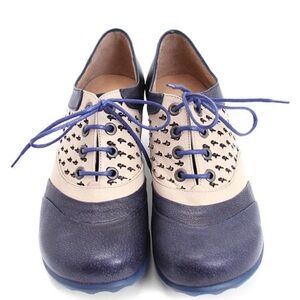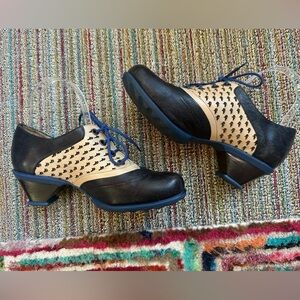 Fluevog NEARLY NEW Hopes Promise navy/cream lace up heels w/ F cutouts - 7.5/8