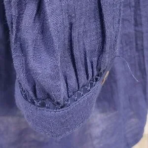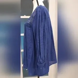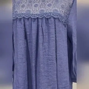 Discover timeless elegance with this chic navy blouse, featuring delicate lace accents. Ideal for any occasion.