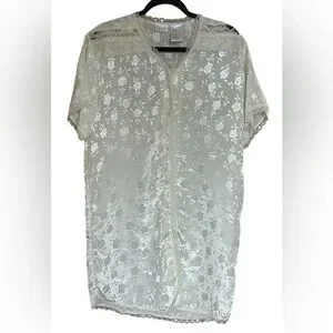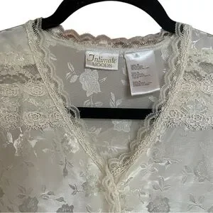 Intimate Moods Vintage Damask Satin Button Robe/Nightgown. Ivory- Size Medium.