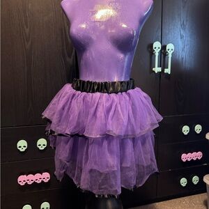 Chic purple layered tulle skirt with black waistband. Perfect for a stylish look.