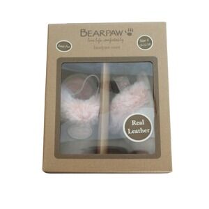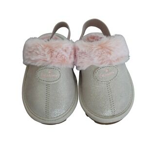 Bearpaw Infant Girls Slippers Size 4 9-12 M Gray Pink Glitter Real Leather New