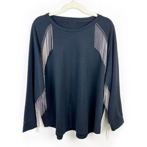 Metal Tassel Crewneck Sweater mini ball beaded tassels western look size: L