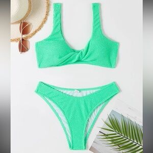 Dive into style with this vibrant green textured bikini set. Perfect for a day at the beach or lounging by the pool.