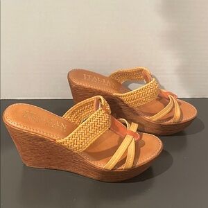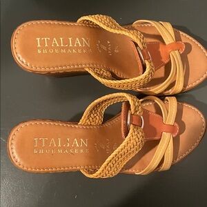 Italian Shoemakers Natural and Tan Wedge Sandals. Size 6 1/2