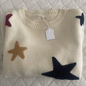 Cozy cream sweater with bold star accents. Perfect for casual outings. Like new condition, no holes, looks new!