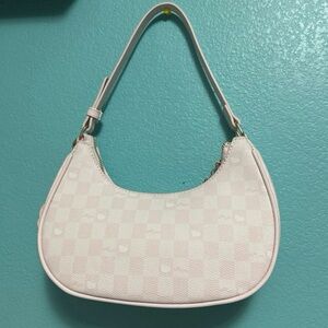 details: hello kitty crescent shoulder bag. It comes with detachable hello kitty face bag charm. gold-tone metal hardware; zipped top closure (hello Kitty zipper pull); adjustable shoulder strap. Interior is fully lined and has one zippered pocket. color pink & white. only worn once!