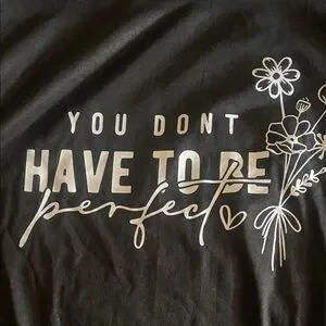 Black t-shirt featuring a white graphic with floral design and motivational text.
