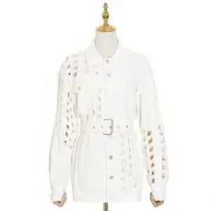 White Cutout Long Sleeve Belted Jacket Mini Utility Edgy Statement Dress