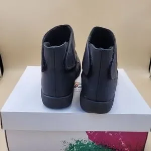 The Women's Clarks Cloudsteppers Sillian Sway Black Faux Suede Ankle Boots in size 6.5 are a stylish and comfortable option for casual wear. With a round toe, low heel, and Velcro closure, these boots are perfect for everyday use. The cushioned insole and comfort features provide added support and convenience, making them a practical choice for women on the go. Made with faux suede and crafted by Clarks, these ankle boots combine style and functionality for a versatile addition to any wardrobe.