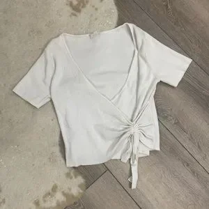 Le Lis white ribbed faux wrap crop top