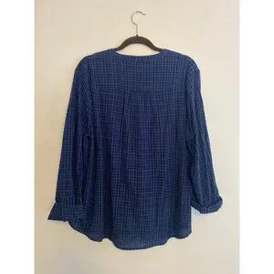 NWT Kim Rogers Women’s Navy Blue Plaid Blouse W/ Roll-Tab Sleeves Size XXL