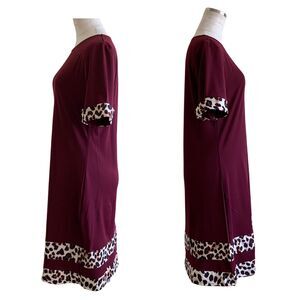 Women’s Burgundy Leopard Trim A-line Midi Dress Size M