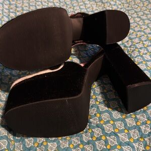 Charming panda-themed heels. Features cute panda face. Black and pink accents. Ideal for a playful style.