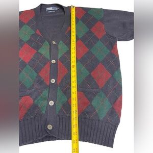 Vintage Ralph Lauren Red and Green Argyle Cardigan Size:XL