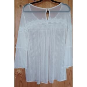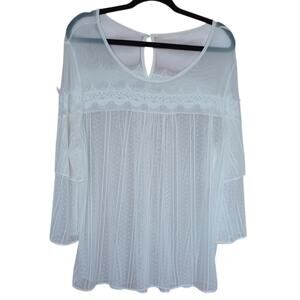 Cato Sheer Mesh Lacy Blouse Women's Large Cream Color Tiered Sleeves Boho Fairy