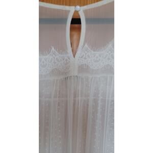 Cato Sheer Mesh Lacy Blouse Women's Large Cream Color Tiered Sleeves, Swiss Dot Lace and Ladder Lace on Bodice, Eyelash Lace on Front, Sleeves and Back, Keyhole in Back. Beautiful Details